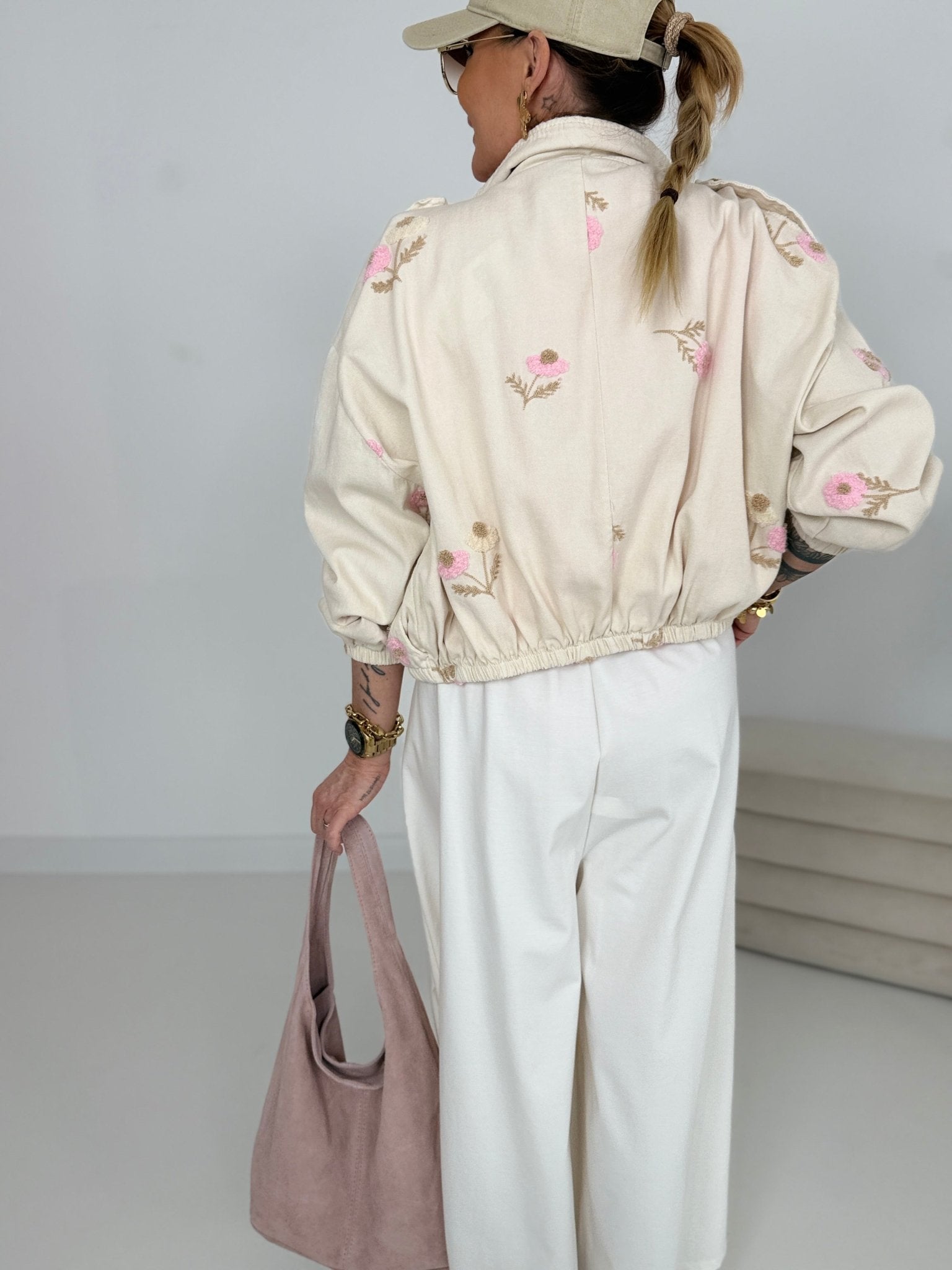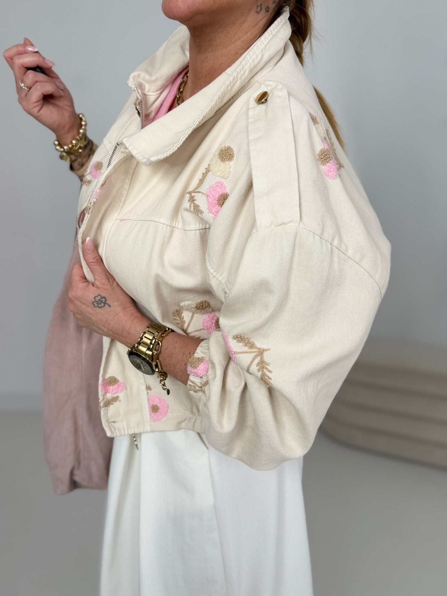 Allover Blumenstickerei in Rosa & Beige