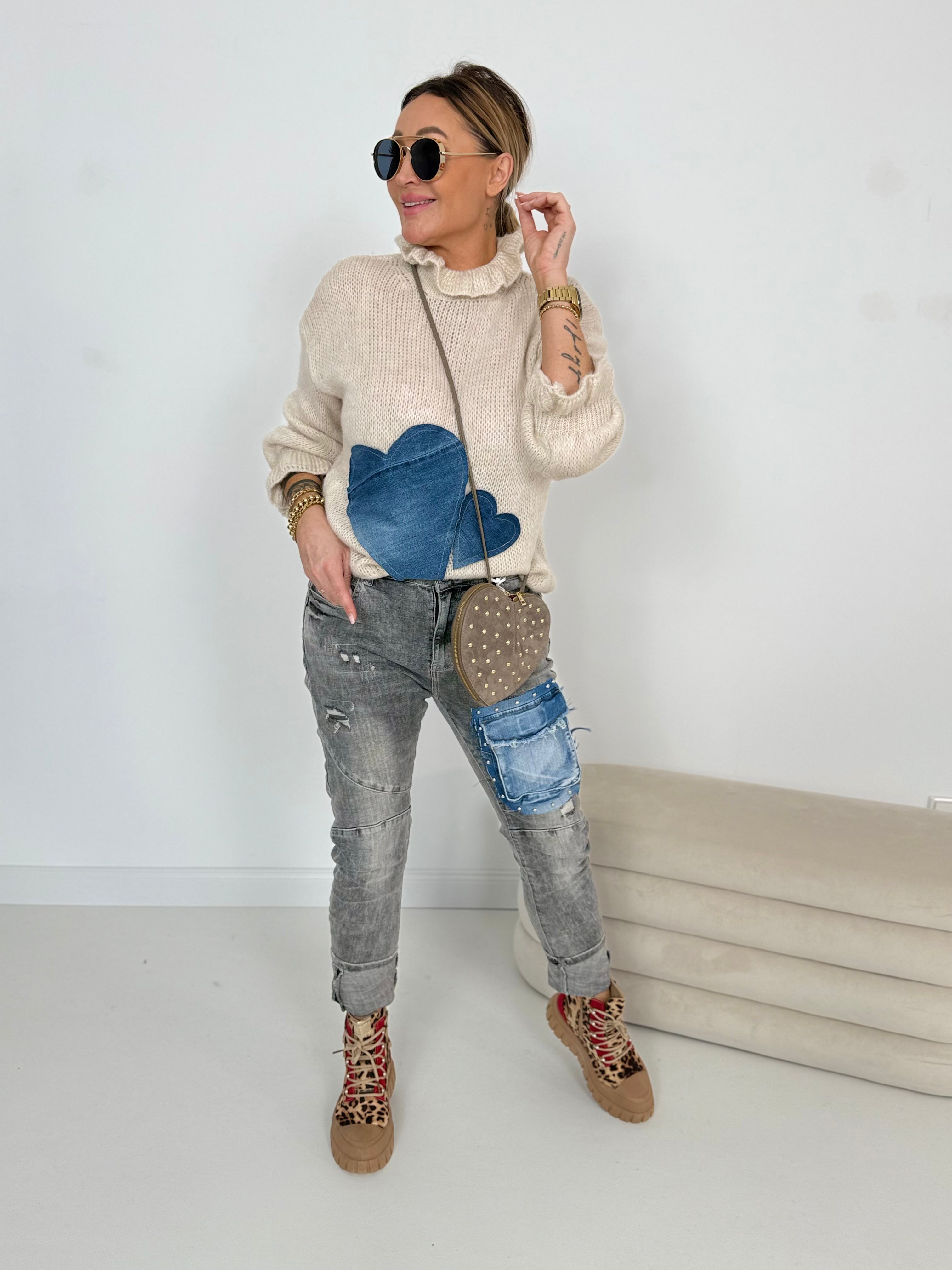 Toppe di jeans a forma di cuore sul davanti