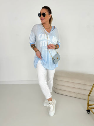 Sweater in Weiss mit glänzenden Steinchen vorne