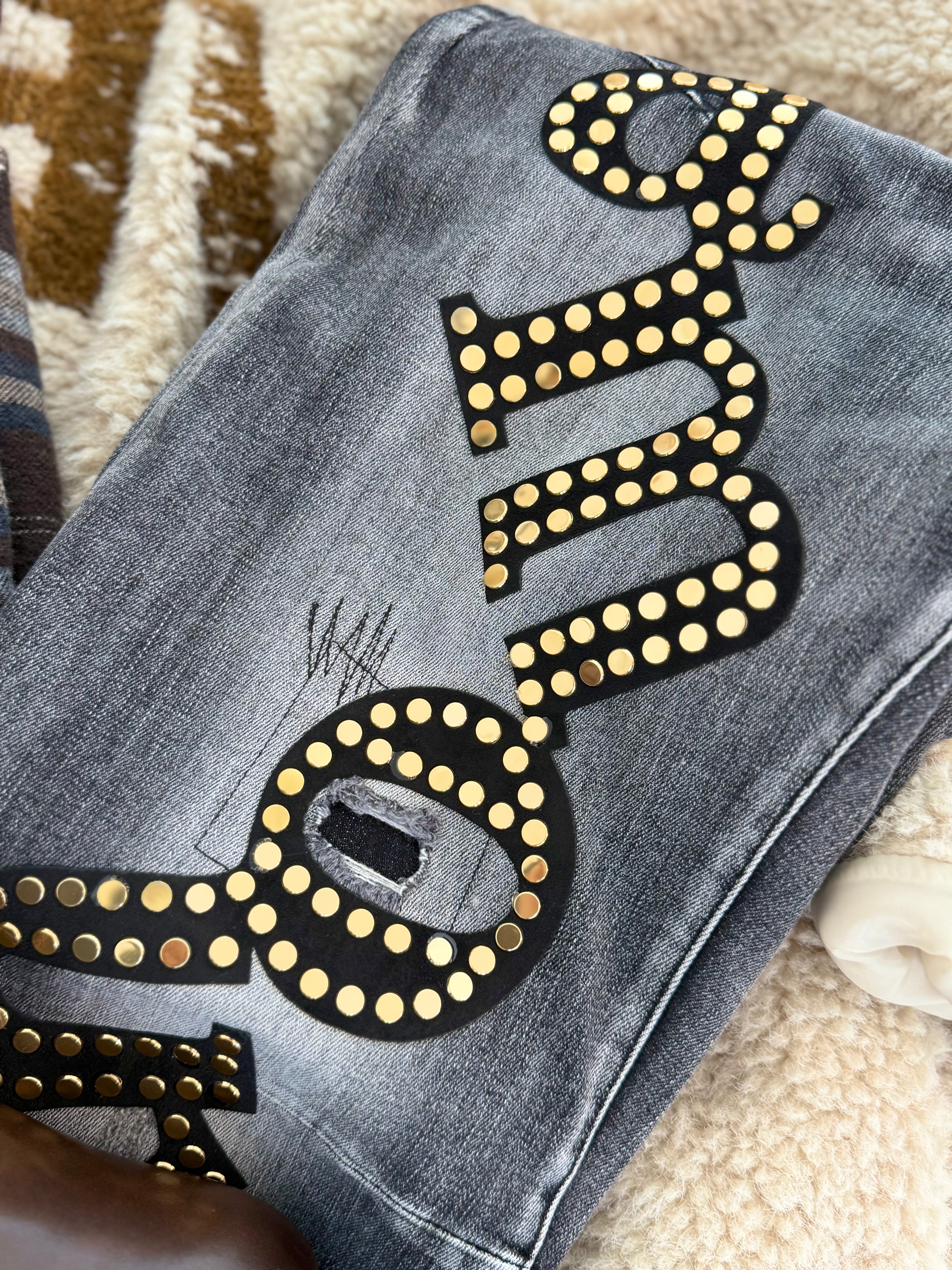 Stampa cool con borchie dorate sul davanti