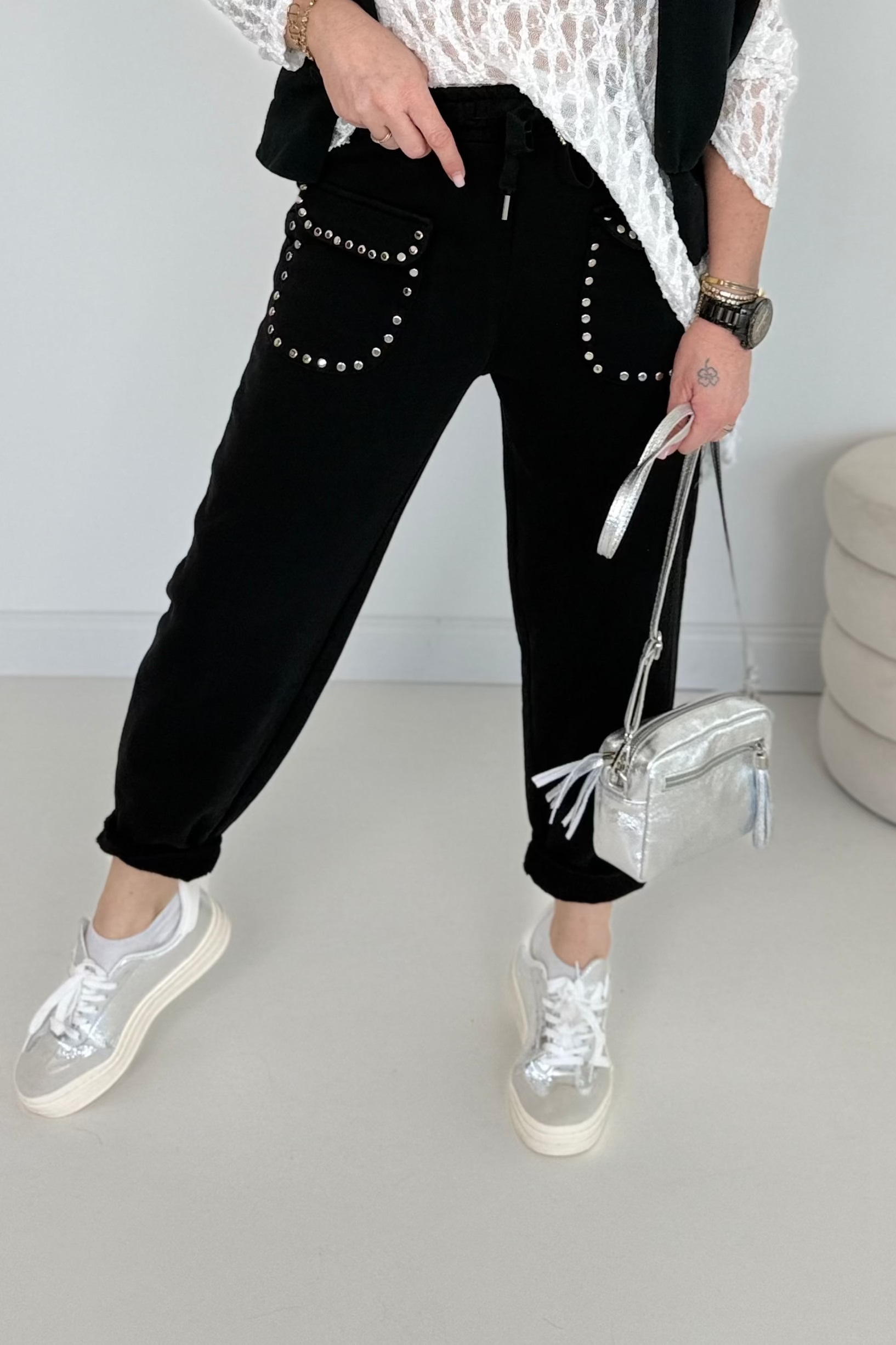 Tasche applicate sul davanti con eleganti rivetti