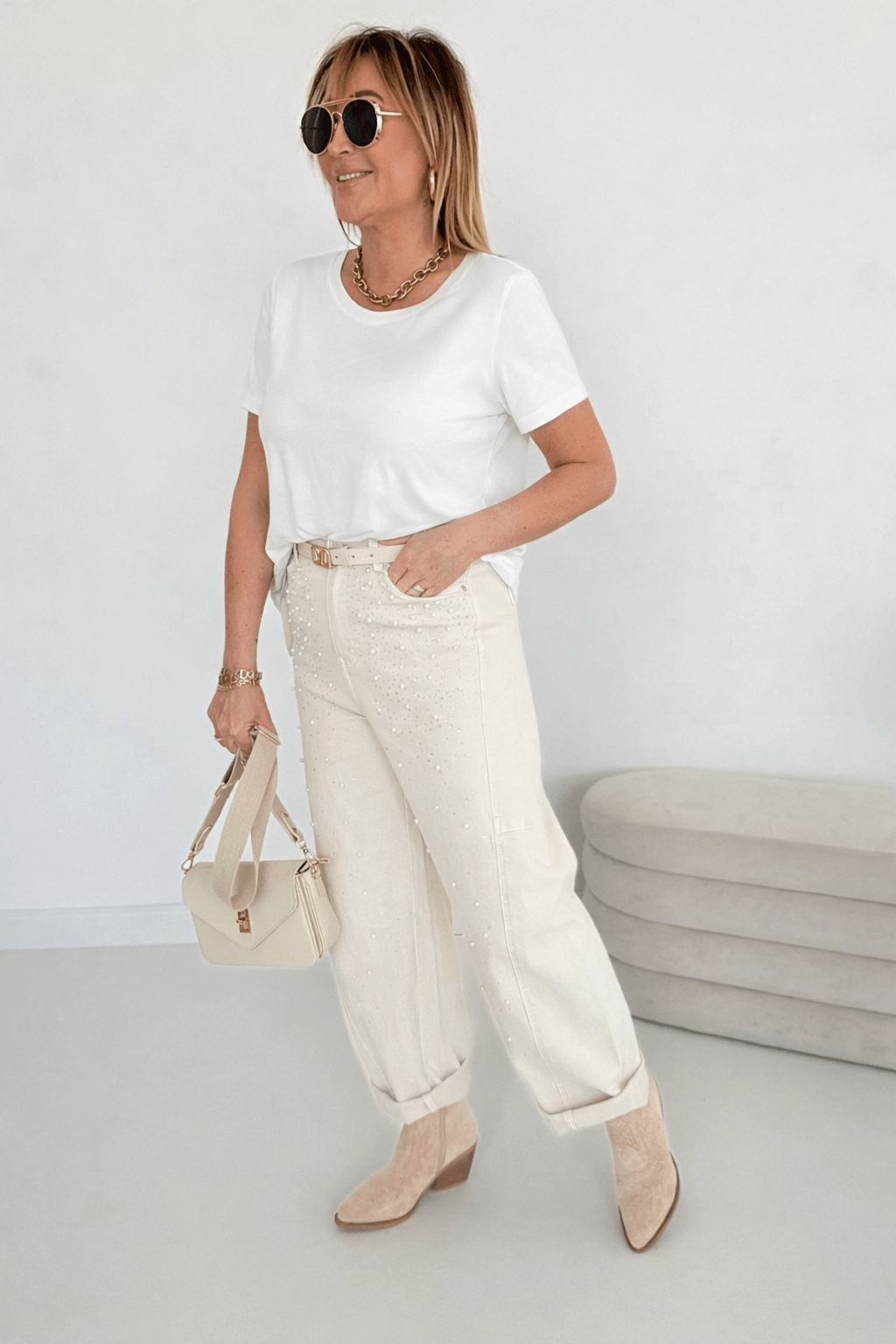 Tolle Jeans, bequem, viele Details mit Perlen und Steinchen, welche sowohl sportlich, als auch elegant kombiniert werden kann. Auch für große Mädels geeignet, ich bin 1,79🤩
